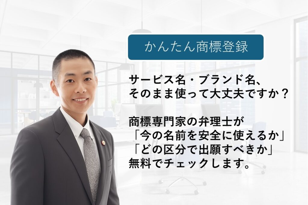 お客様の考えたネーミングが既に他社に商標登録されていないかどうかを無料で簡易調査いたします。